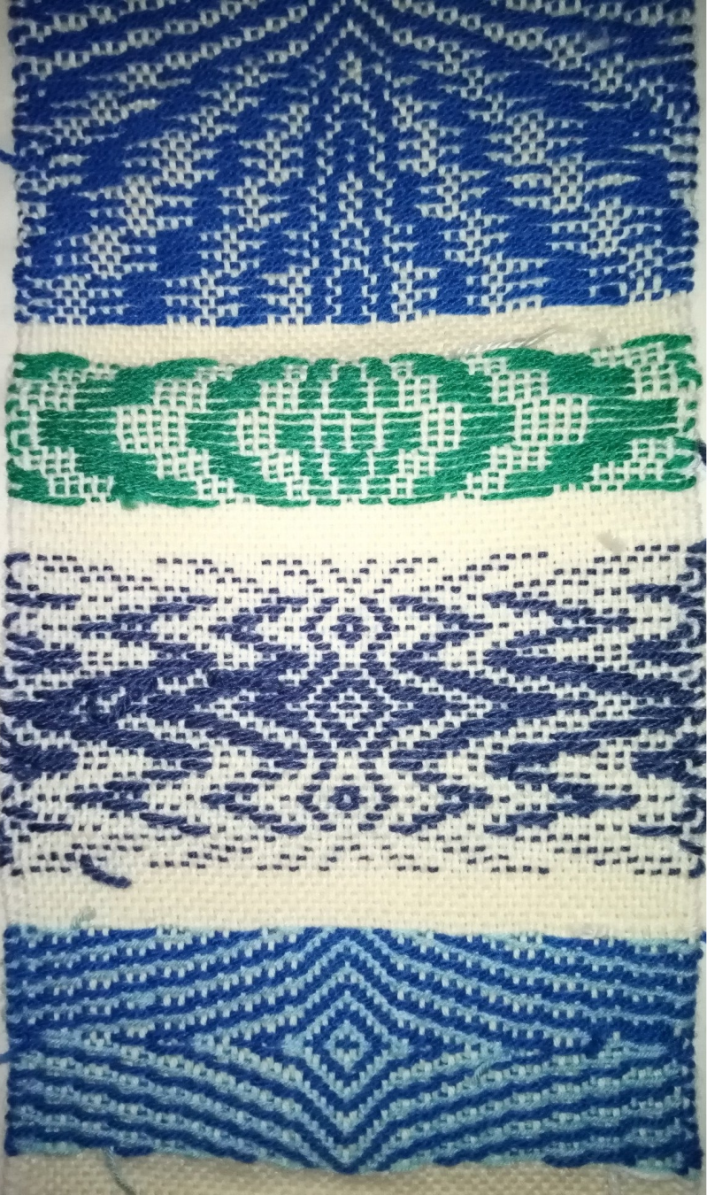Sur cette photo, il y a un jeu d'armure intéressant. L'enfilage des fils dans les cadres permet ces motifs bien particuliers.